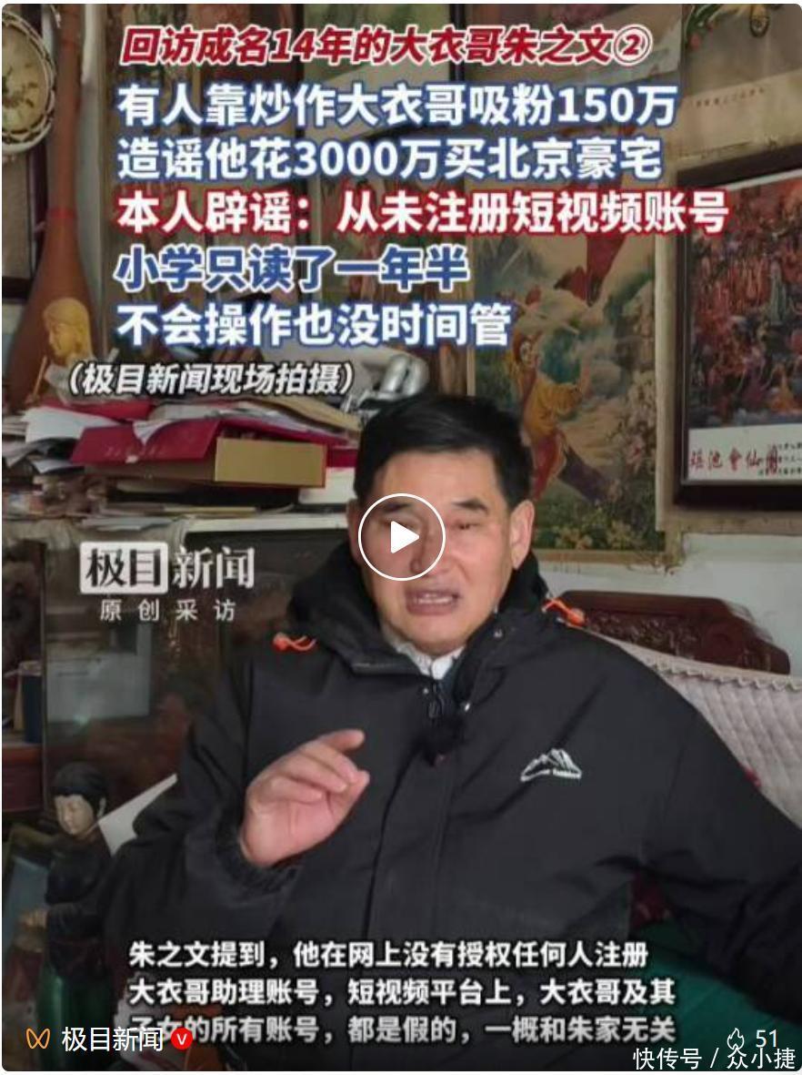随着移动互联网时代的到来,与“大衣哥”朱之文相关的话题,依然在持续走热,众多自媒体从业者拍摄起大衣哥及其家人,试图赚取流量。